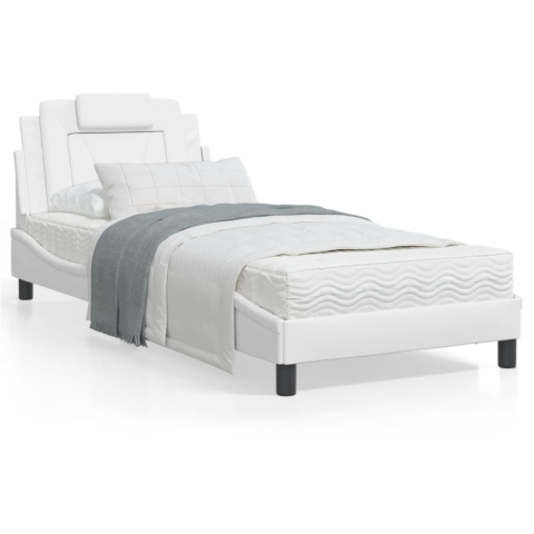 1 kép vidaXL Fehér műbőr ágykeret LED-világítással 90x190 cm