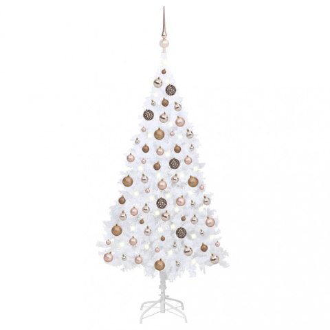 3 kép vidaXL Fehér PVC műkarácsonyfa LED-ekkel és gömbszettel 150 cm
