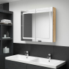 vidaXL fehér, tölgyszínű LED-es tükrös fürdőszobaszekrény 80x12x68 cm