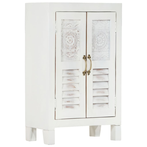 Teljes vidaXL fehér tömör akácfa tálalószekrény 55x30x90 cm termékleírás
