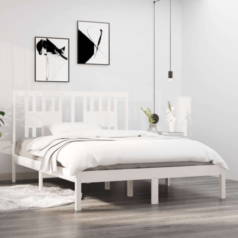 1 kép vidaXL fehér tömör fa ágykeret 135 x 190 cm (4FT6 Double)