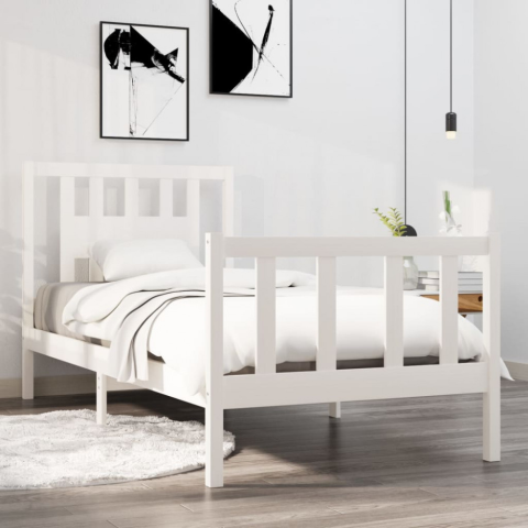 1 kép vidaXL fehér tömör fa ágykeret 90x190 cm (3FT Single)