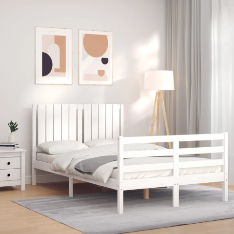 1 kép vidaXL fehér tömör fa ágykeret fejtámlával 4FT Small Double