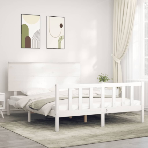 1 kép vidaXL fehér tömör fa ágykeret fejtámlával King Size