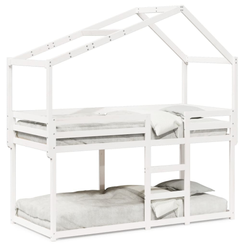 1 kép vidaXL fehér tömör fenyőfa ágy emelettel és tetővel 75 x 190 cm