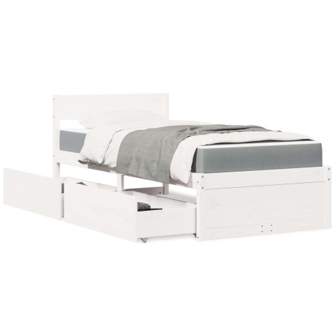 1 kép vidaXL fehér tömör fenyőfa ágy fiókokkal és matraccal 100 x 200 cm