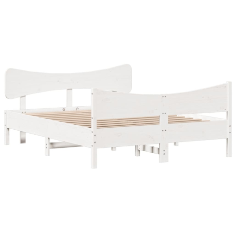 vidaXL fehér tömör fenyőfa ágykeret fejtámlával 160 x 200 cm (3216376)