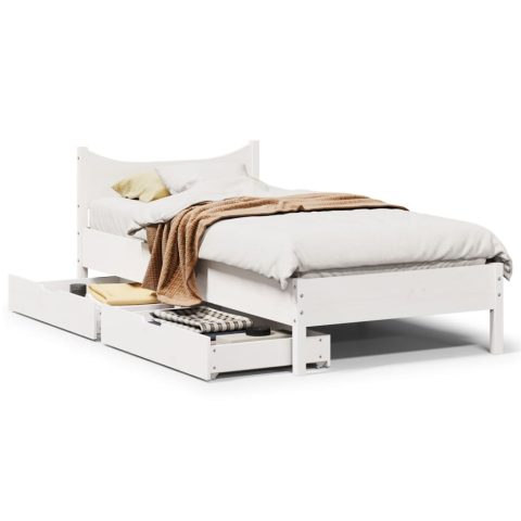 1 kép vidaXL fehér tömör fenyőfa ágykeret fiókokkal 75 x 190 cm