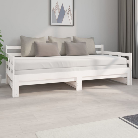 6 kép vidaXL fehér tömör fenyőfa kihúzható kanapéágy 2 x (90 x 200) cm