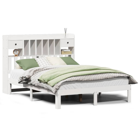1 kép vidaXL fehér tömör fenyőfa könyvespolcos ágy matrac nélkül 150x200 cm (3322604)