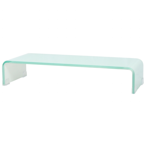 Ez a praktikus TV-állvány edzett üvegből készült. Ennek a visszafogott TV-egységnek az elegáns, áramvonalas kialakítása modern megjelenést kölcsönöz lakóterének. Ez az üvegpolc TV-állványként vagy magasítóként használható asztali monitorhoz, televízióhoz, laptophoz és egyéb multimédiás eszközhöz. A monitort magasító üvegpolcnak köszönhetően kényelmesen ülve jobban ráláthat a képernyőre, ami segít csökkenteni a nyak vagy a hát terhelését és kén