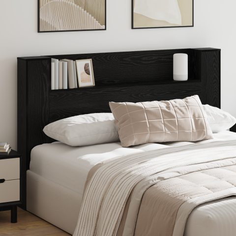 1 kép vidaXL Fejhajtó szekrény LED -es lámpákkal polcokkal fejtámlával tárolóval Musta tammi Faanyag