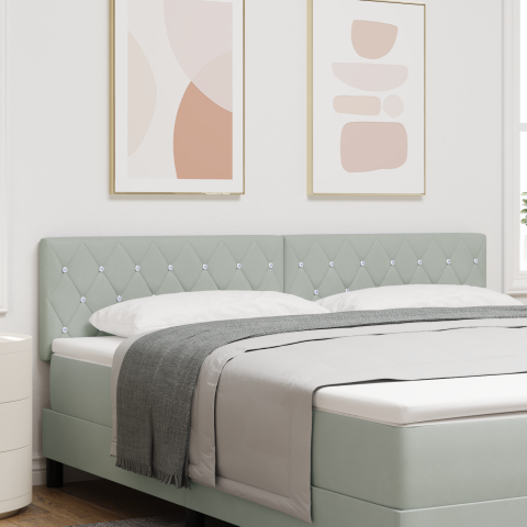 1 kép vidaXL Fejtámla Kristály Gombos Tűzött Világosszürke 180 cm Bársonyos
