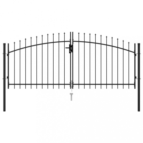 1 kép vidaXL Fekete acél lándzsahegy tetejű kétajtós kerítéskapu 3 x 1,25 m