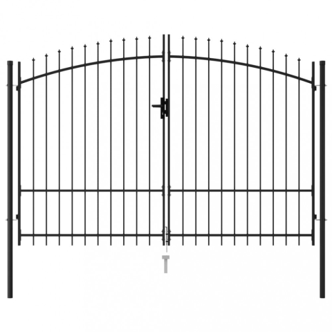 1 kép vidaXL Fekete acél lándzsahegy tetejű kétajtós kerítéskapu 3 x 1,75 m