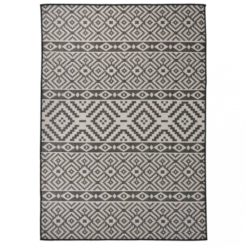 Teljes vidaXL Fekete csíkos lapos szövésű kültéri szőnyeg 140 x 200 cm termékleírás