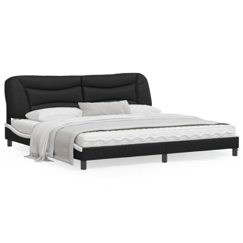 1 kép vidaXL fekete és fehér műbőr ágykeret LED-világítással 200x200 cm