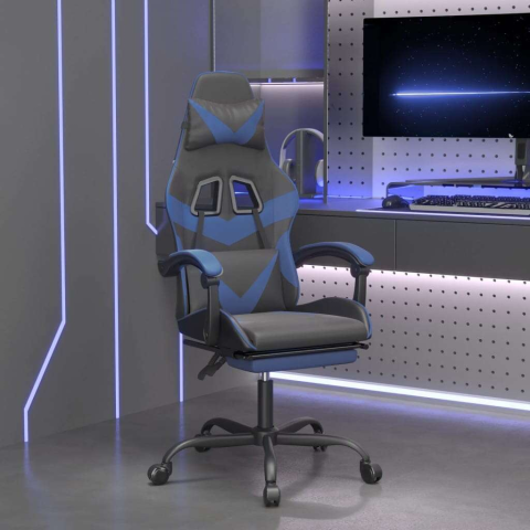 Kényelmes Játékszék Lábtartóval: Élvezd a tökéletes játékélményt! 🎮 Ez a fekete-kék műbőr forgó játékszék tökéletes választás a kényelmes és stílusos játékhoz. A prémium minőségű műbőr tartós és könnyen tisztítható. A vastag párnázás, az állítható h...