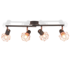Ez a 4 spotlámpával ellátott mennyezeti lámpa ipari dizájnnal rendelkezik és bármely szoba megjelenését feldobja. A lámpa kiváló minőségű fekete fém talpának köszönhetően könnyen felszerelhető a falra vagy a mennyezetre. Az egyedi, sárgaréz színű vas lámpabúrák hozzájárulnak az ipari stílushoz és kellemes hatást kelt, ahogy a rajtuk átszűrődő fény bevilágítja a szoba minden sarkát. Ebbe a lámpába E14-es izzó való. Kérjük, vegye figyelembe, hogy a s
