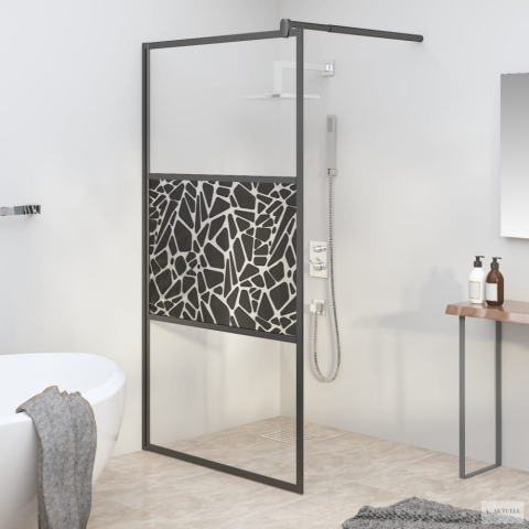 1 kép vidaXL fekete ESG üveg zuhanyfal kőmintával 115x195cm