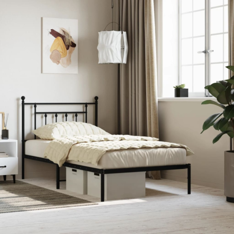1 kép vidaXL fekete fém ágykeret fejtámlával 100 x 190 cm