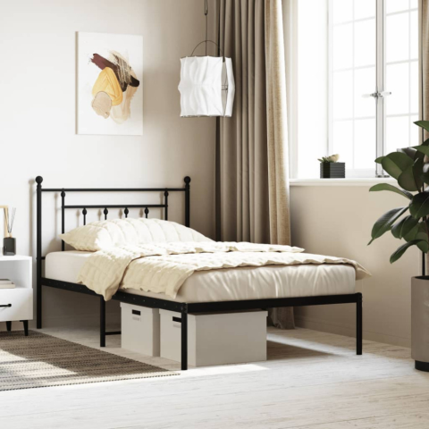 1 kép vidaXL fekete fém ágykeret fejtámlával 107 x 203 cm