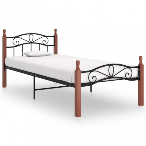 3 kép vidaXL fekete fém és tömör tölgyfa ágykeret 90 x 200 cm