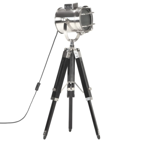 Világítsa meg otthonát retró stílusú háromlábú állólámpánkkal! Ez a vintage stílusú spotlámpa divatos és szemet gyönyörködtető kiegészítő lesz bármilyen belső térben. Az ezüst bevonatú, dönthető és forgatható acél lámpabura meleg, hangulatos fényt bocsát ki. A fekete, tömör mangófából készült masszív lábak biztonságosan állnak. A magasság igény szerint 55 cm és 69 cm között állítható. A Hollywood lámpa könnyen összeszerelhető. A szabado