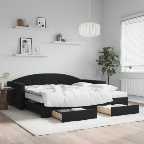 1 kép vidaXL fekete kihúzható bársony heverő fiókkal 100 x 200 cm