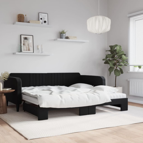1 kép vidaXL fekete kihúzható bársony heverő matraccal 100 x 200 cm