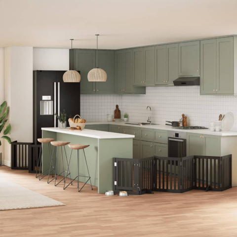 1 kép vidaXL fekete nyárfa 12 paneles összecsukható kutyakapu ajtóval 600 cm