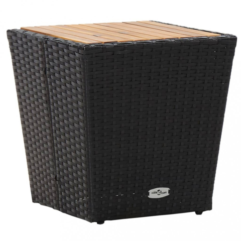 1 kép vidaXL Fekete polyrattan és tömör akácfa teázóasztal 41,5x41,5x43 cm