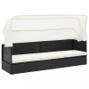 vidaXL Fekete polyrattan kerti kanapé napellenzővel