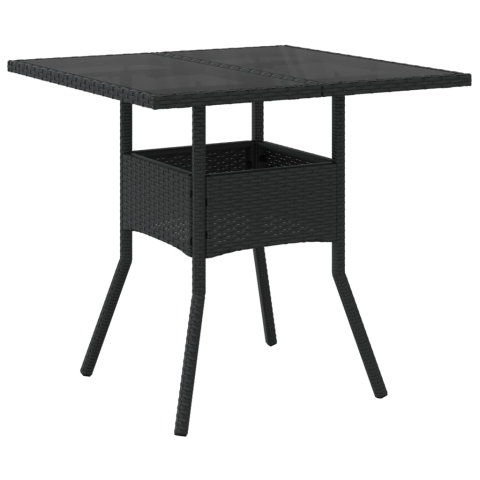 vidaXL fekete polyrattan üveglapos kerti asztal 80 x 80 x 75 cm (365521)
