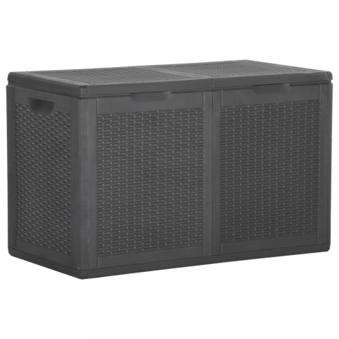Ez az egyszerű tárolóláda kiváló megoldás a kert, az udvar vagy a terasz rendbetételére. A tárolóláda 100% PP anyagból készült, így időjárás- és UV-álló, valamint könnyen mozgatható. A kerti tárolóláda visszafogott, mégis időtlen dizájnnal rendelkezik, és tökéletesen illeszkedik a beltéri és kültéri dekorációhoz. A kerti tárolóláda emellett bőséges tárolóhelyet kínál párnák, párnák, egyéb háztartási vagy kerti tárgyak számára elérhető k