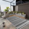 Ez a divatos kültéri szőnyeg kültéri környezete kiváló kiegészítője lesz! Helyezze a pihenősarokba az erkélyen, a teraszon vagy az udvaron, és tegye egy pillanat alatt otthonosabbá azt. Ez a polipropilénből készült szőnyeg puha, és még a medence területét