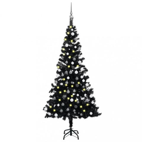 1 kép vidaXL fekete PVC műkarácsonyfa LED-fényekkel és gömbszettel 150 cm