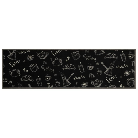 1 kép vidaXL fekete reggeli mintás mosható bársony konyhaszőnyeg 45x150 cm (4005584)