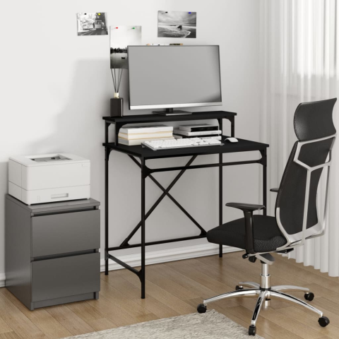 1 kép vidaXL fekete szerelt fa és vas íróasztal 80 x 50 x 90 cm