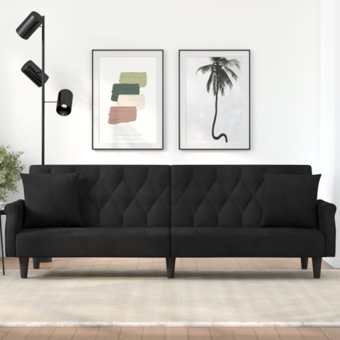 Teljes vidaXL fekete szövet kanapéágy karfákkal termékleírás