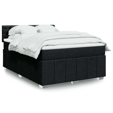 1 kép vidaXL fekete szövet rugós ágy matraccal 140 x 200 cm