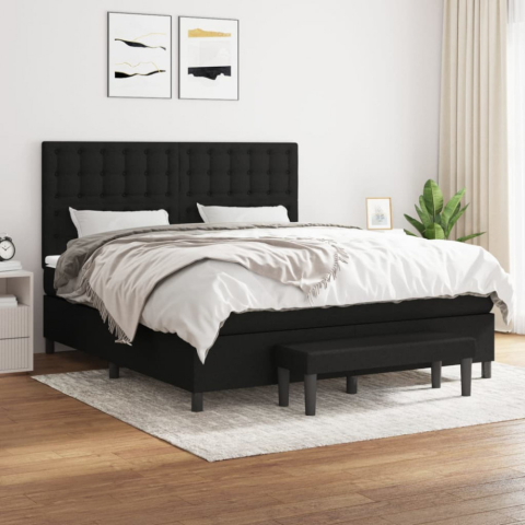 1 kép vidaXL fekete szövet rugós ágy matraccal 180 x 200 cm