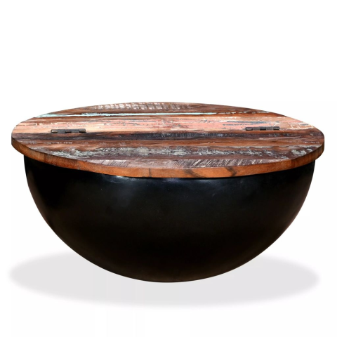 1 kép vidaXL fekete, tál alakú újrahasznosított fa dohányzóasztal