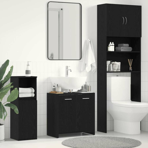 1 kép vidaXL fekete tölgy szerelt fa fürdőszobai mosdószekrény 60x33x60 cm