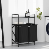 Teljes vidaXL fekete tölgyfa mosodai kosár 2 rekeszes polcokkal termékleírás