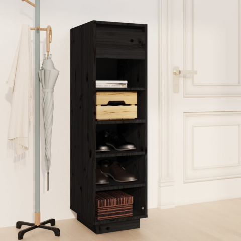 Teljes vidaXL fekete tömör fenyőfa cipősszekrény 34 x 30 x 105 cm termékleírás