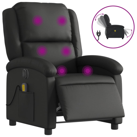 vidaXL fekete valódi bőr elektromos dönthető masszázsfotel (3204258) masszázsfotel 1 kép
