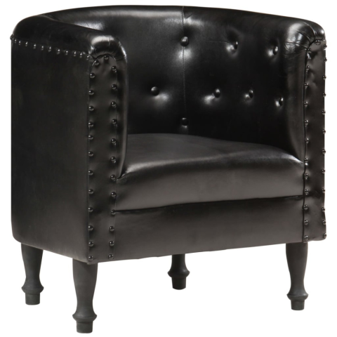 1 kép vidaXL Fekete valódi bőr kagylófotel