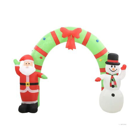 Felfújható karácsonyi Mikulás és hóember dekorációs boltívünk tökéletes díszlet a közelgő ünnepekre! A szövetből készült felfújható bejárati dekoráció könnyű, időjárásálló, vízálló és tartós. A dísz bal és jobb oldalán két boldog integető karakter találha