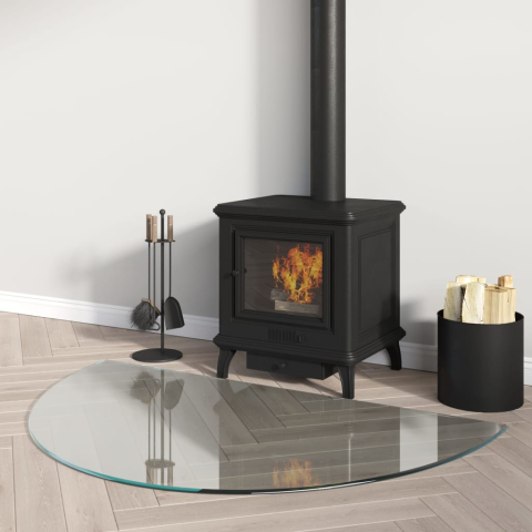 Ez a kandalló-üveglap padlóburkolatként használható, hogy megóvja a padló felületét sütés közben. Prémium minőségű anyag: Ez a kiváló minőségű, edzett üvegből készült lap nagyszerűen ellenáll a magas hőmérsékletnek. Ráadásul az üveg alaplap akár 250 kg-ot is elbír.Ferde polírozott szél: A kerek ívű, 8 mm-es fazettával ellátott üveglap gyönyörű, folyékony átmenetet képez a padló felé a csiszolt és polírozott élekkel. A csiszolt üveg átlátsz